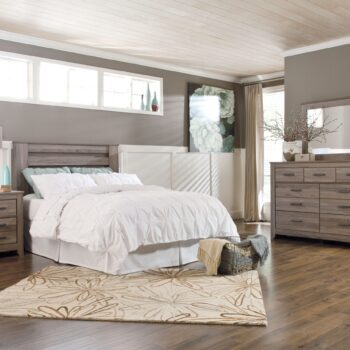 Ashley Furniture Zelen – Warm Gray – 3 Pc. – Dresser, Mirror, Queen/Full Panel Headboard