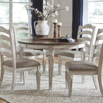 Ashley Furniture Realyn – White – 5 Pc. – Extension Table, 4 Ladderback Side Chairs