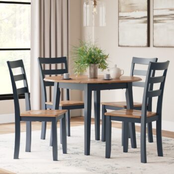 Ashley Furniture Gesthaven – Natural / Blue – 5 Pc. – Round Dining Room Drop Leaf Table, 4 Side Chairs