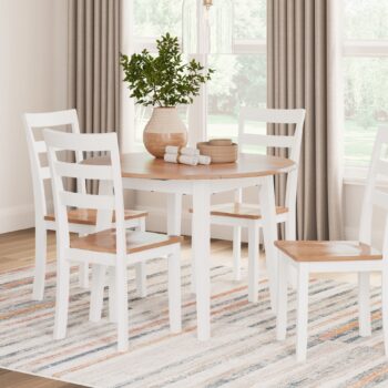 Ashley Furniture Gesthaven – Natural / White – 5 Pc. – Round Dining Room Drop Leaf Table, 4 Side Chairs