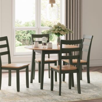 Ashley Furniture Gesthaven – Natural / Green – 5 Pc. – Round Dining Room Drop Leaf Table, 4 Side Chairs