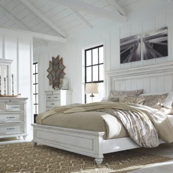 Ashley Furniture Kanwyn – Whitewash – 8 Pc. – Dresser, Mirror, Chest, King Panel Bed, 2 Nightstands