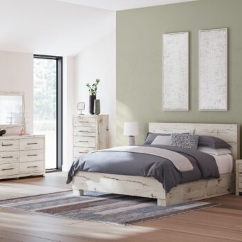 Ashley Furniture Lawroy – Light Natural – 8 Pc. – Dresser, Mirror, Chest, King Panel Bed With Under Bed Storage