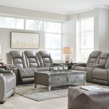 Ashley Furniture The Man-Den – Gray – 3 Pc. – Power Sofa, Loveseat, Recliner