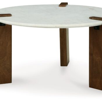 Ashley Furniture Isanti – White / Brown – Round Cocktail Table