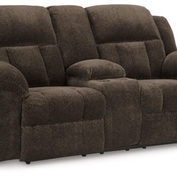 Ashley Furniture Frohn – Chocolate – Dbl Reclining Loveseat With Console