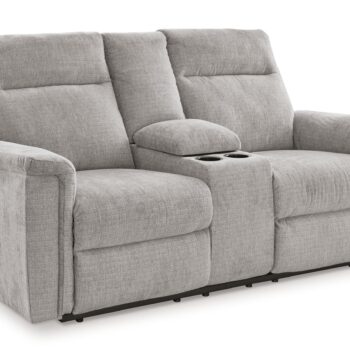 Ashley Furniture Barnsana – Gravel – Dbl Power Reclining Loveseat with Console