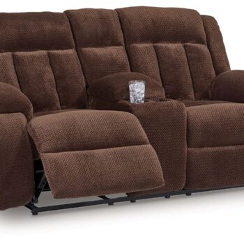 Ashley Furniture Free Wake – Chocolate – Double Relcining Power Loveseat With Console