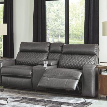 Ashley Furniture Samperstone – Gray – Power Reclining Loveseat With Console 3 Pc Sectional