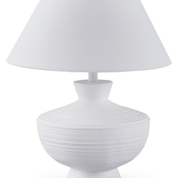 Exuding a casually cool sensibility, this table lamp is a bright idea whether it’s in a living space, bedroom or entry. The shapely base sports a vertical line pattern with a distressed finish that enhances its relaxed appeal.