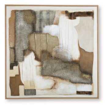 Become captivated by the abstract movement of this wall art set. With warm neutrals coming together in geometric harmony, the hand painted duo defines your decor with visual intrigue. Layered fabric embellishments elevate the look and feel.