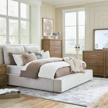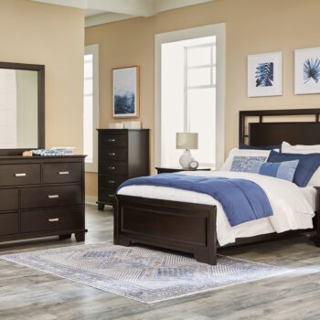 Cool, clean and casually modern. This panel bedroom’s light natural finish sets the tone for your calming sanctuary. Framed elements and cross-brace accents add dimension and authenticity to the bed’s simply stunning profile.