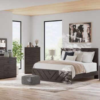 Designed with everyday style in mind, the Prendonea bedroom package is a simply chic approach to modern living. A dark charcoal finish blends black and brown undertones, creating a versatile look that effortlessly pairs with your existing pieces. And for must-have function, this set’s smooth-gliding drawers store clothes and linens in charming fashion.