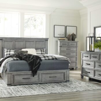 Ashley Furniture Russelyn – Gray – 8 Pc. – Dresser, Mirror, Chest, King Storage Bed, 2 Nightstands