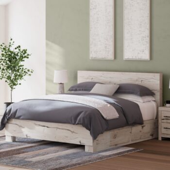 A fresh take on country living, this king panel storage bed strikes the perfect balance between farmhouse and contemporary. Its rustic white finish and replicated reclaimed oak grain merge effortlessly with the hearty, clean-lined look we love today. Two storage drawers help you keep clothes organized and put clutter in its place. You’ll love how this bed’s simple design transforms your bedroom into a harmonious haven.