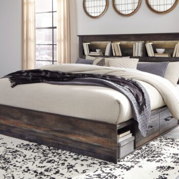 Ashley Furniture Drystan – Brown / Beige – King Bookcase Bed with 2 Side Drawers