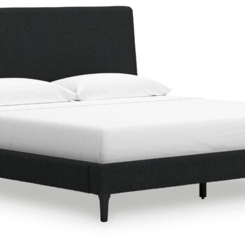 This queen upholstered bed reflects your sophisticated approach to boho style. Crafted with both form and function in mind, its black boucle fabric brings trend-right beauty to bedtime. The versatile design suits all-neutral spaces or blends with your favorite pops of color. It’s inviting, yet posh. Luxe, yet laid-back. With this bed, your free-spirited vibe meets modern design.