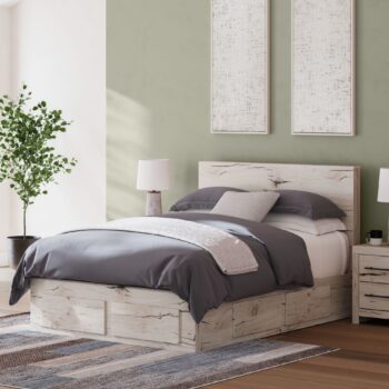 Ashley Furniture Lawroy – Light Natural – Queen Panel Bed With 2 Under Bed Storage Units