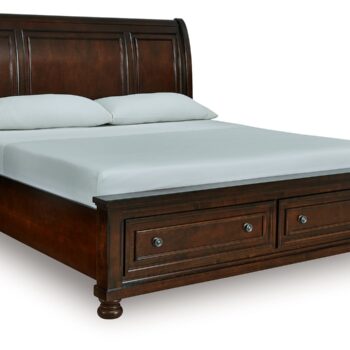 - Includes sleigh headboard, sleigh rails and storage footboard