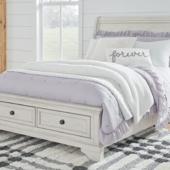 Elegant, timeless furnishings take your bedroom to the next level. Nothing does that better than this queen sleigh bed. The antiqued white finish with a wonderful grain texture radiates sophistication, making this the perfect piece to round out the ultimate tasteful bedroom.