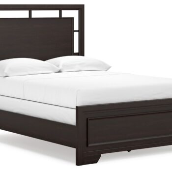 - Includes panel headboard, footboard, rails and slats