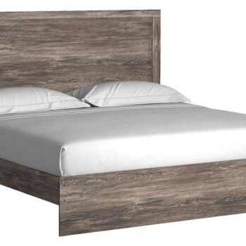 With its clean-lined look and modern attitude, this panel bed is a fresh style awakening. A crisp, white hue over subtle replicated wood grain easily complements other furniture finishes. Its simple, unadorned profile is given depth and dimension with the addition of plank-style moulding on the headboard proof that beauty lies in the details.