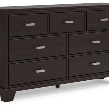 Feast your eyes on this richly versatile chest of drawers. Its traditional-inspired dark brown finish effortlessly blends with contemporary bright nickel-tone pulls to create a stunning look that’s not too stuffy or too trendy. Spacious drawers offer plenty of storage for your wardrobe and spare bed linens.