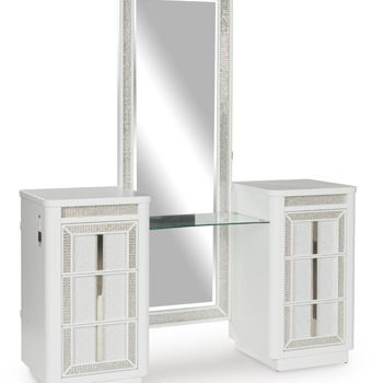 Transform your bedroom with this chic vanity and mirror. Its modern design and glamorous details create a sophisticated retreat. The built-in LED lighting and rhinestone-framed drawers and mirror add style and practical storage while reflecting elegance. Let your sanctuary shine and never let anyone dull your sparkle.