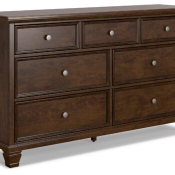 Discover something exceptional with this dresser. Its impressive silhouette offers a casual traditional aesthetic, embodied by classic-inspired columns and a relaxed grayish brown finish. Inset framed drawers of various sizes are casually cool and packed with ample storage possibilities.