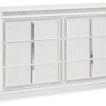 - Drawers with rhinestone frames; textured laminate drawer fronts
