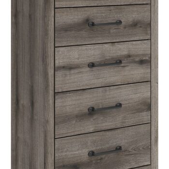 - Weathered gray finish over replicated oak wood grain