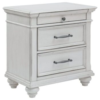 Get the look of posh barn wood without setting foot in a salvage yard. Replicated rough-sawn oak of this nightstand has a vintage finish that is reminiscent of a timeworn family heirloom. Warm, rustic and naturally beautiful, it’s just got that ageless appeal. Sleek hardware in a pewter tone is a snappy finishing touch.
