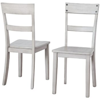 Busy breakfasts and family dinners get a dose of modern farmhouse flair with this dining chair. Its two-tone finish contrasts a light butcher block hue with an antiqued white frame for an utterly charming effect. A contoured seat elevates the comfort level. Complete with a ladderback design, it’s an effortless seating solution with chic character.
