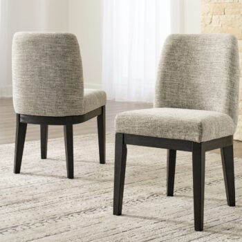 Invite your family into the heart of your home with this upholstered dining room chair. Its framed back and tapered legs, in a beautifully textured black finish, provide a sturdy foundation. The chair’s heavily woven fabric has a quality feel-good touch, while its silvertone nailhead trim is decorative without all the fuss. This is trend-right urban farmhouse style.