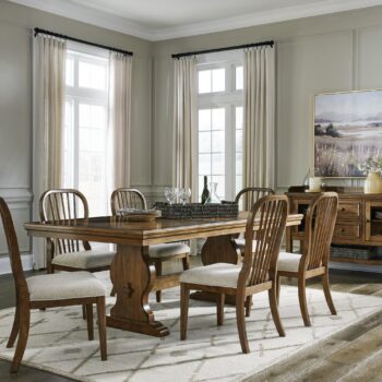 Dressed to thrill, this dining ensemble offers a high-design look at a down-to-earth price. Ultra-sleek lines are accentuated with a dark waxy brown oak-tone finish that’s so easy on the eyes. Clean-lined and modern, this set showcases quality craftsmanship and attention to detail for a look that’s made to last.