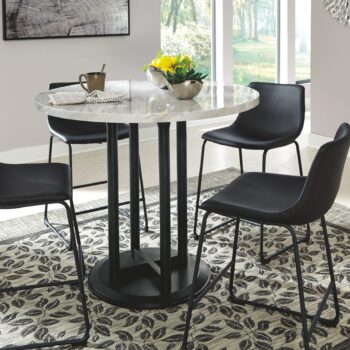 Can’t decide between classic and contemporary? Embrace the beauty of transitional style with this casually sophisticated dining table and chairs. The clean-lined profile and traditional cherry finish merge with contrasting upholstery to create a timeless yet on-trend look when guests gather. A discreetly placed lower shelf simply makes great storage sense.