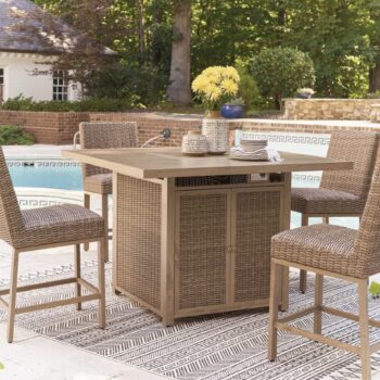 Ashley Furniture Walton Bridge - Driftwood - 5 Pc. - Square Bar Table W/Fire Pit, 4 Barstools $3,223.78