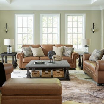 This dining room set sits comfortably at the intersection of modern lodge and farmhouse aesthetics. Your warm and welcoming disposition is reflected in its charming architectural elements and light brown glazed finish. Even with its poise, it remains practical. A smooth extension feature serves up plenty of space for family and guests, defining your dining room with reliable function and style.