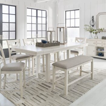 Ashley Furniture Robbinsdale - Antique White - 9 Pc. - Rectangular Counter Height Dining Extension Table, 6 Barstools, Bench, Server $3,164.38