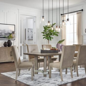 Ashley Furniture Chrestner – Brown / Beige – 8 Pc. – Rectangular Dining Room Table, 6 Side Chairs, Server