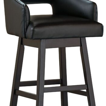 This striking barstool invites you to take contemporary modern style for a spin. Comfortably cushioned seat, self-returning swivel and contoured back make it beautifully in tune with your needs. Luxurious faux leather upholstery is a sensational touch.