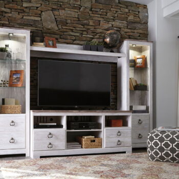 Ashley Furniture Willowton – Whitewash – 4 Pc. – Entertainment Center – 64″ TV Stand with Fireplace Option