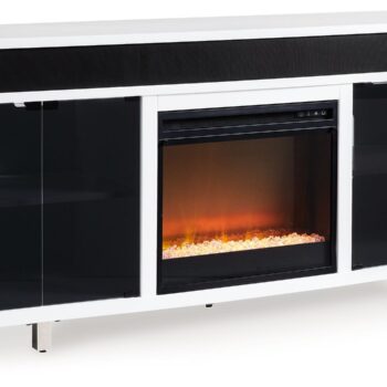 This TV stand with fireplace insert is the ultimate statement piece for a coastal cottage or shabby chic inspired retreat. Whitewashed finish is wonderfully easy on the eyes. Paired with the TV stand’s unique plank-style top, it’s a driftwoody look that has our minds drifting away to beachy-keen escapes. Adding that much more show-stopping style, the electric fireplace insert operates with or without heat and includes a six-level temperature setting, a remote control and an overheating control for added safety. It comes with faux glass crystals and natural stones, so you can customize the look of the flame bed.