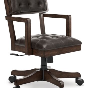 Raise the bar on modern farmhouse style with this home office chair. Its casual good looks are accentuated with a comfortably cushioned seat and warm satin black finish. And it swivels, rolls and adjusts so you can remain a mobile multitasker. Whether your style is vintage, country or eclectic, this richly crafted chair adds a hearty element.