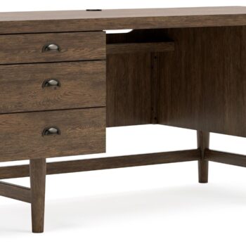 Elevating the art of traditional cottage styling, this desk is your heavenly home office realized. Its antiqued two-tone aesthetic blends a chipped white with a distressed wood tone top for added charm. Framed drawer fronts, decorative corbels and elegantly turned and tapered legs add refinement, while dark bronze-tone knobs lend a classic touch.