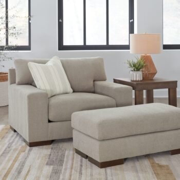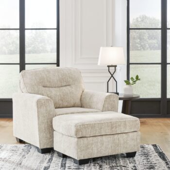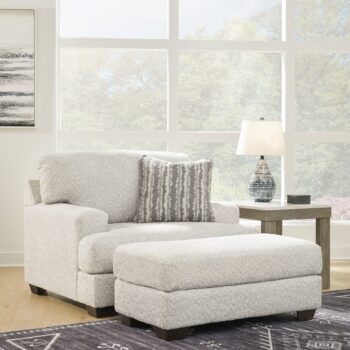 For a fresh spot in your space, turn to this designer chair and ottoman. Wind down at the end of a long day when you sink into this canyon of comfort.
