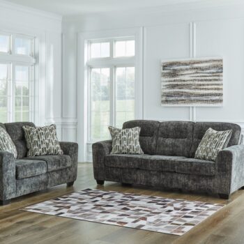 This living room set speaks to those drawn to fresh, contemporary style with richly neutral appeal. Subtle and sophisticated, the plush upholstery and dark tri-block legs are a natural complement for so many color schemes. Accent pillows make the seating even more welcoming.