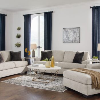 What’s new in neutrals? Shades of gray, of course. Embrace the sophisticated design trend with this gorgeous living room group that offers a clean-lined, contemporary style at a comfortably cool price. Sure to lift your spirits, the plush chenille fabric is fabulously neutral. Contemporary flared arms give it a distinctive flair. This group also arrives with two cool brushstroke accent pillows to elevate the taste and comfort level.