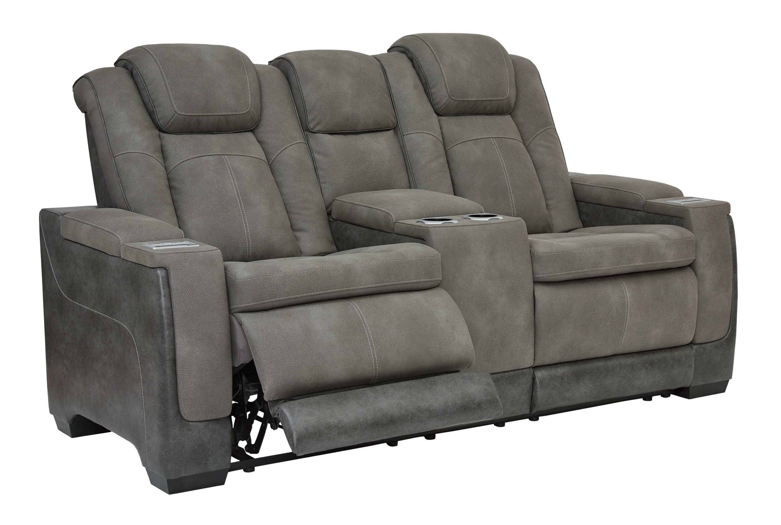 Ashley Furniture Next-Gen Durapella – Slate – Power Reclining Loveseat with Console/Adj Headrest