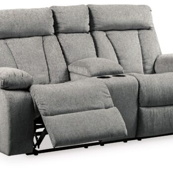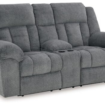 Big, bold comfort. Game time and movie nights meet their match with this power reclining loveseat. Made for ultimate indulgence, an extra-deep seat encourages you to sit back and bliss out. Customize the recliner and headrest to find your ideal viewing position with effortless one-touch controls. And with plush upholstery in a trendy hue, you won’t need to sacrifice style for cozy seating.